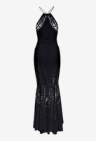 This dress is sure to turn heads! Cut for a body-hugging fit, it’s detailed with a lace-inspired laser-cut pattern. It also has a seductive open back framed by thin straps and a mermaid skirt to move beautifully as you walk. Wear it over a bikini.